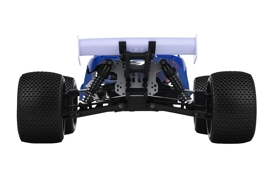 Suspensão totalmente ajustável, incluindo queda, curvatura, dedo do pé, distância entre eixos, etc., e ajuste do motor pode ser otimizado para diferentes trilhos, componentes de trem de tração de metal e designs de chassis fortes lidam com terrenos acidentados.